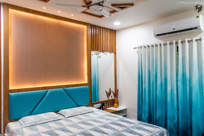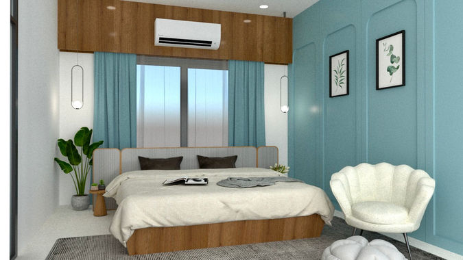 The master bedroom imparts the feel of love and peace. The polished wood with vivid furnishing is looking affluent in its own way presenting the personality of the couple. The combination of whites and browns is an embodiment of classy look. The concealed wooden handle are handmade giving the best sleek look.